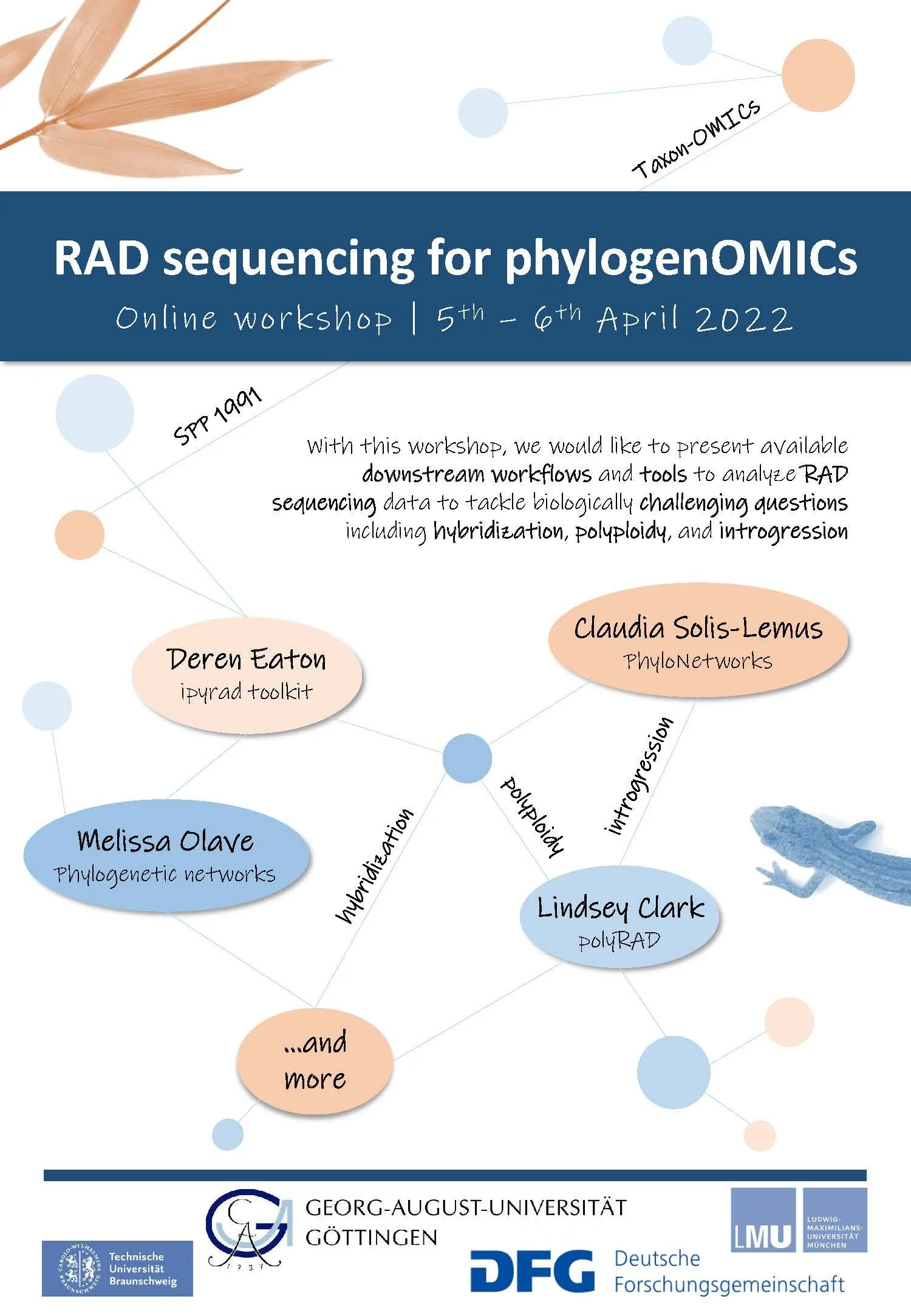 Join us for the RAD sequencing for phylogenOMICs online workshop on 5-6 April! Taxon-OMICS partners from Göttingen, München and Braunschweig have organized an applied and comprehensive program. We will present downstream workflows and tools to analyze RAD sequencing data followed by discussion with experts.